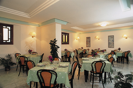 La sala ristorante dell’hotel ospiterà i clienti sia a pranzo che a cena, per offrire loro piatti della tradizione locale e nazionale, la colazione è servita invece sul terrazzo.