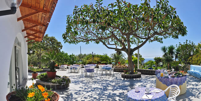 La cucina, curata direttamente dai proprietari, propone piatti della tradizione napoletana ed ischitana, mentre la colazione viene servita sulla terrazza.
