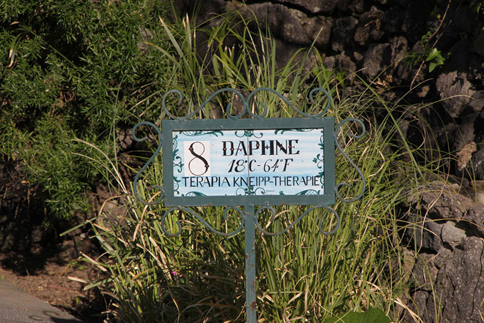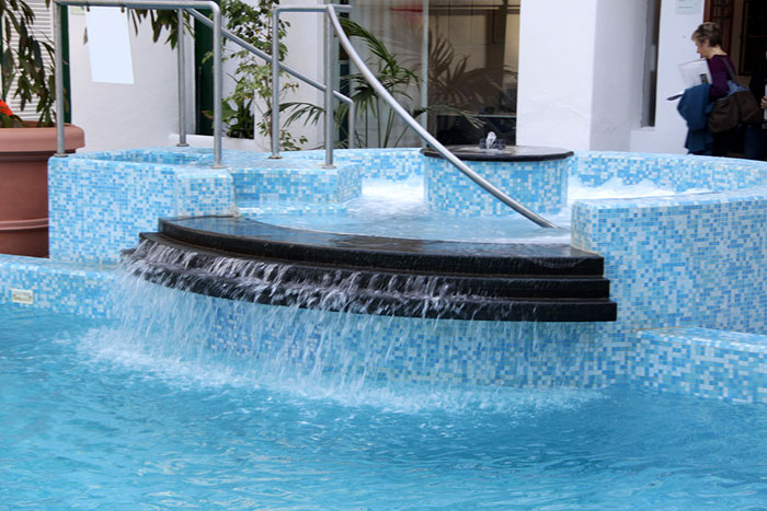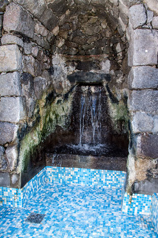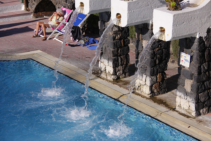 8 termali, alimentate dalla vicina sorgente, con acqua a temperatura variabile tra i 30° ed i 40°