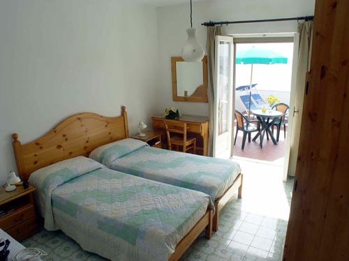 L’hotel dispone di camere dotate di tutti i servizi con bagno o doccia, balcone o terrazzo attrezzato con sdraio ed ombrellone, che affacciano sulla sottostante spiaggia dei Maronti.