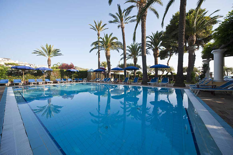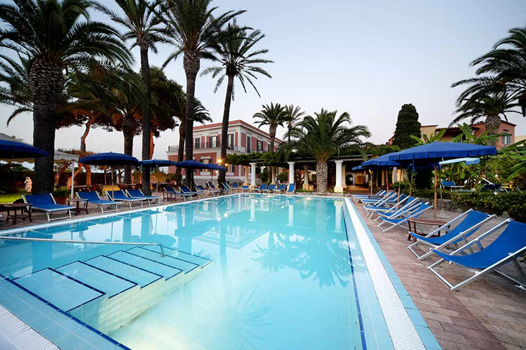 La struttura, costituita da tre fabbricati dove sono ubicate le camere tutte con balcone o terrazzo con vista giardino o mare, dotate di aria condizionata, tv satellitare, telefono e phon, un rigoglioso giardino ricco di palme, da una grande piscina esterna di acqua salata e da una termale coperta è stata costantemente rinnovata nel corso degli anni pur mantenendo tutta la sua eleganza originaria per offrire sempre e comunque un soggiorno di alta classe.
