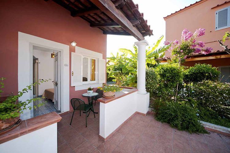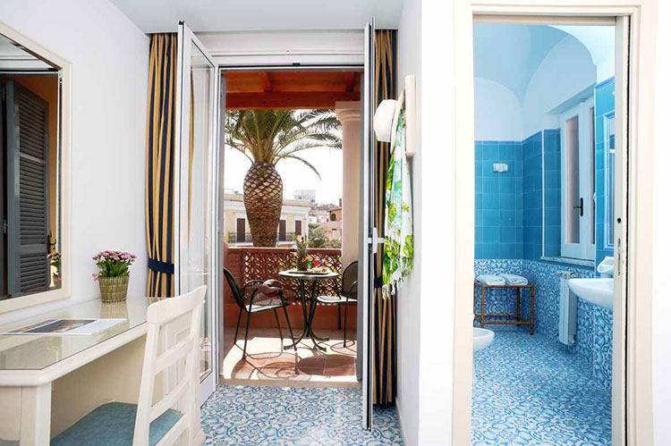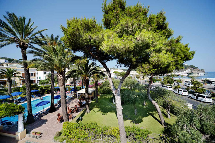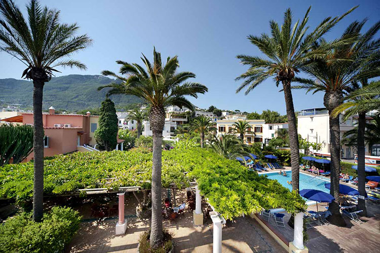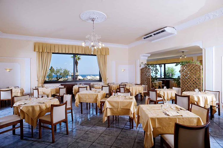 Dalle sue terrazze si gode una vista suggestiva del mare e Lacco Ameno, gli ambienti sono caldi e confortevoli, i saloni ampi, come quello che ospita il ristorante dove tra ricchi buffet e menù ricercati è possibile gustare le prelibatezze della gastronomia locale, tra cui spicca la piccola pasticceria fatta in casa.